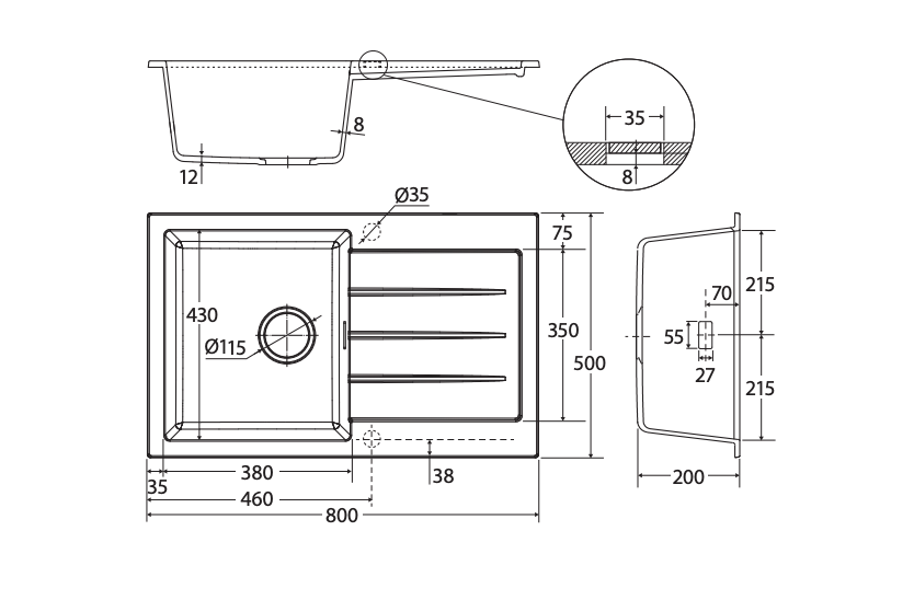 Outer Dimensions: 800 x 500 x 200 mm