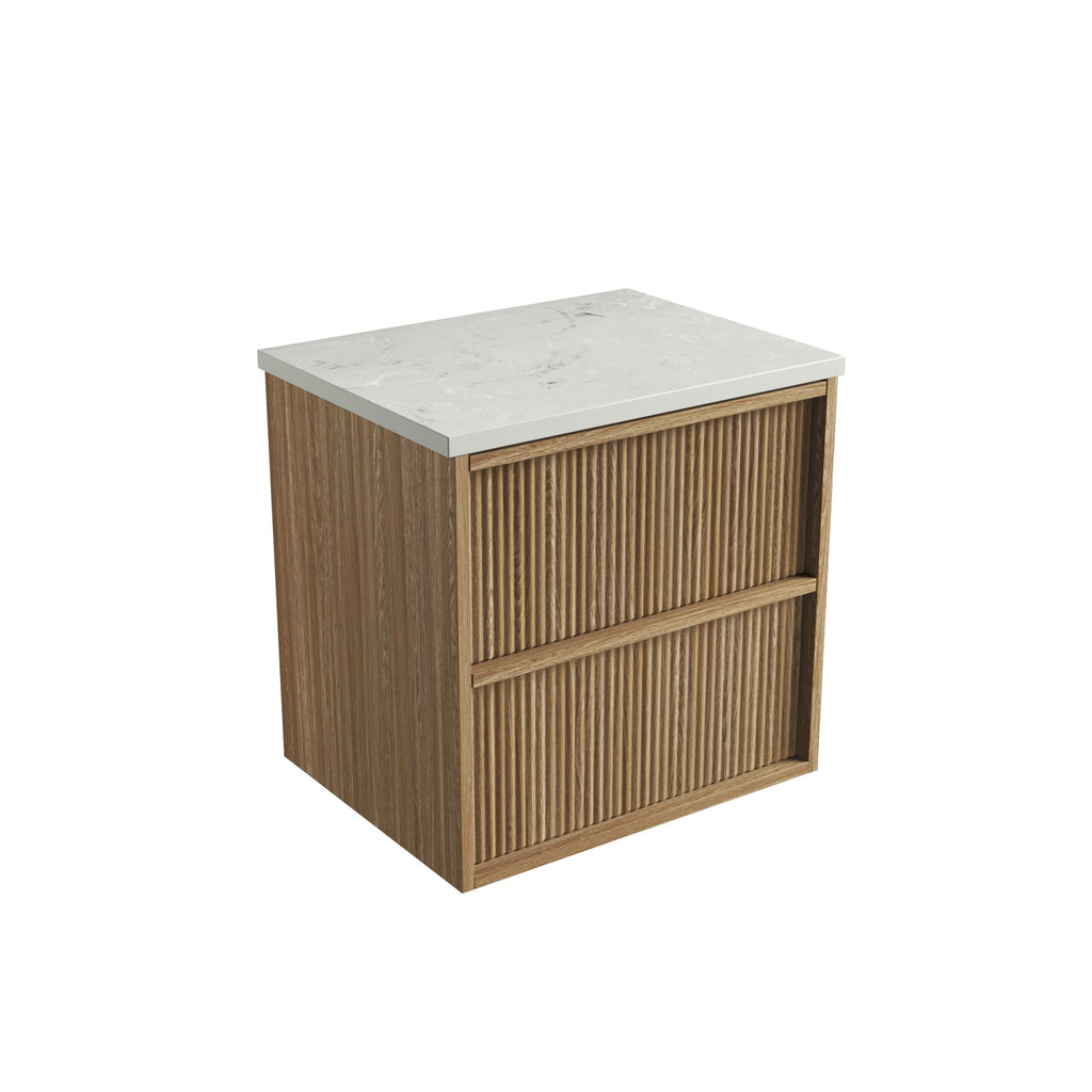 - This all-drawers vanity offers a perfect blend of modern style and natural texture. Constructed from premium-grade, durable plywood, it showcases rich natural timber grains enhanced by a contemporary V-groove polyurethane laminate finish—both stylish and hard-wearing. The bevel edge design adds a touch of elegance, while Hettich Quadro S full-extension, soft-close runners provide smooth, quiet drawer operation. Thoughtfully designed with premium graphite interiors and included drawer organisers, this piece delivers both beauty and everyday functionality.
